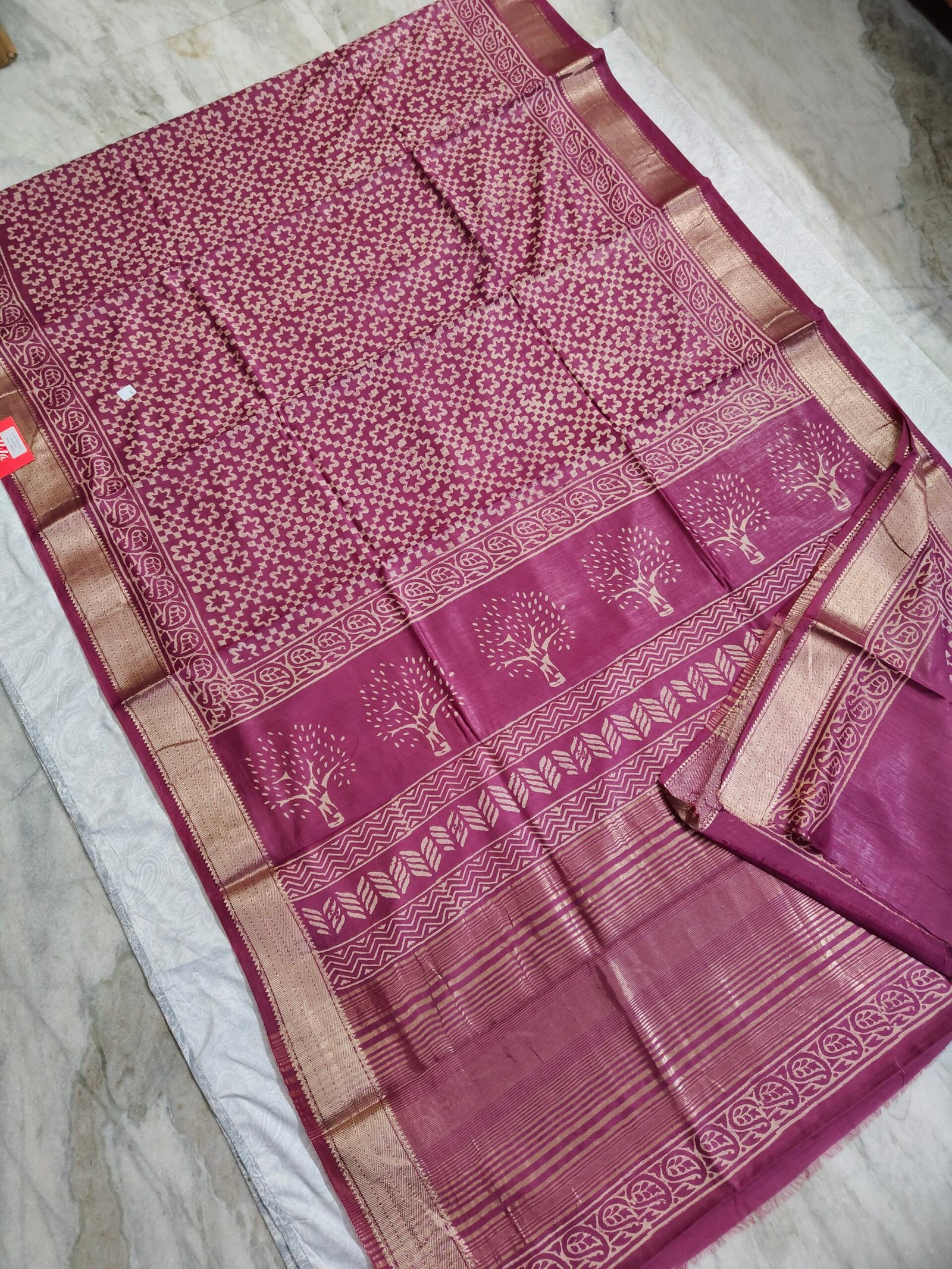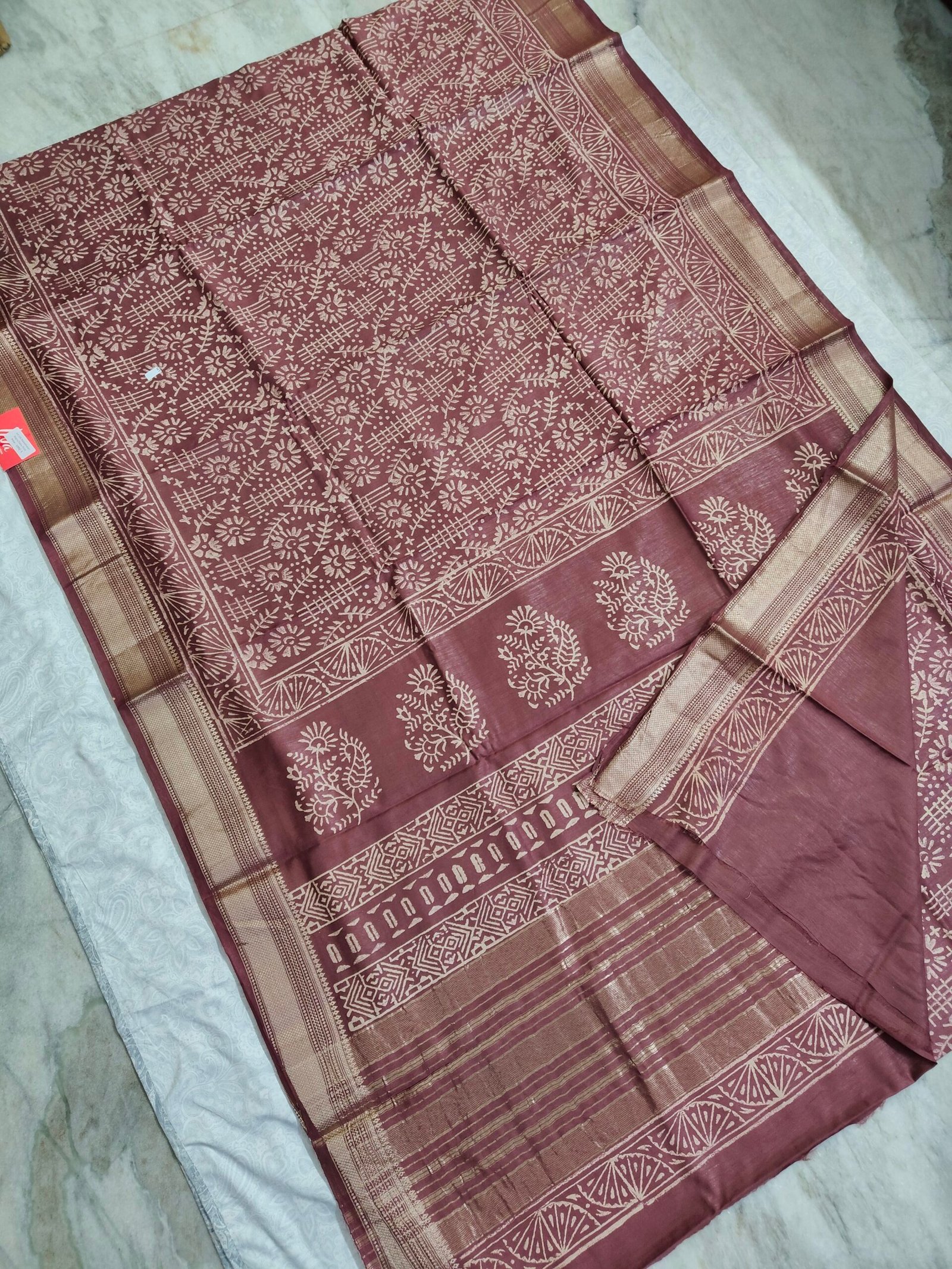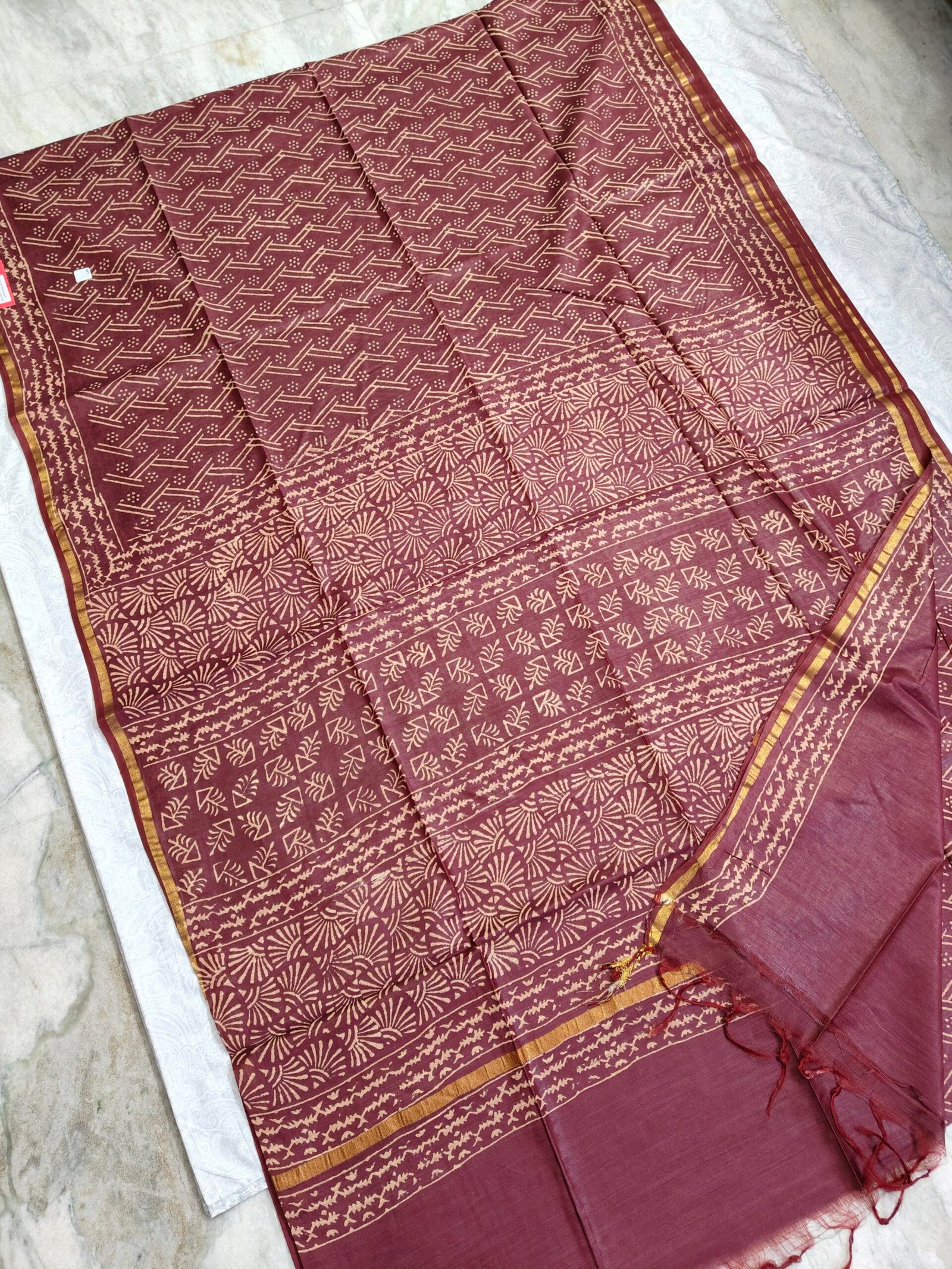 Maheswari Silk Saree with Block/Ajrak/Bagru Printed (MSS047)