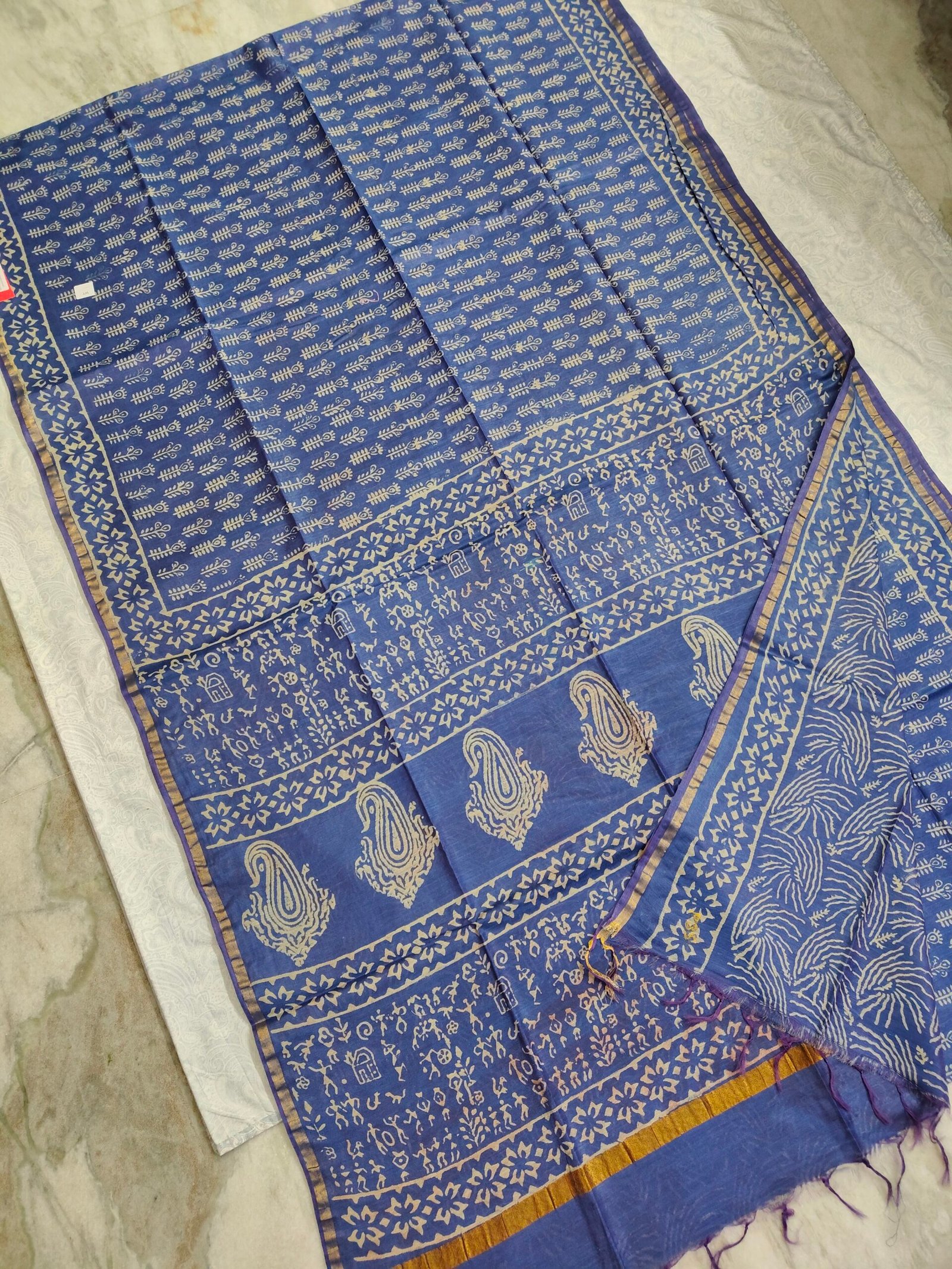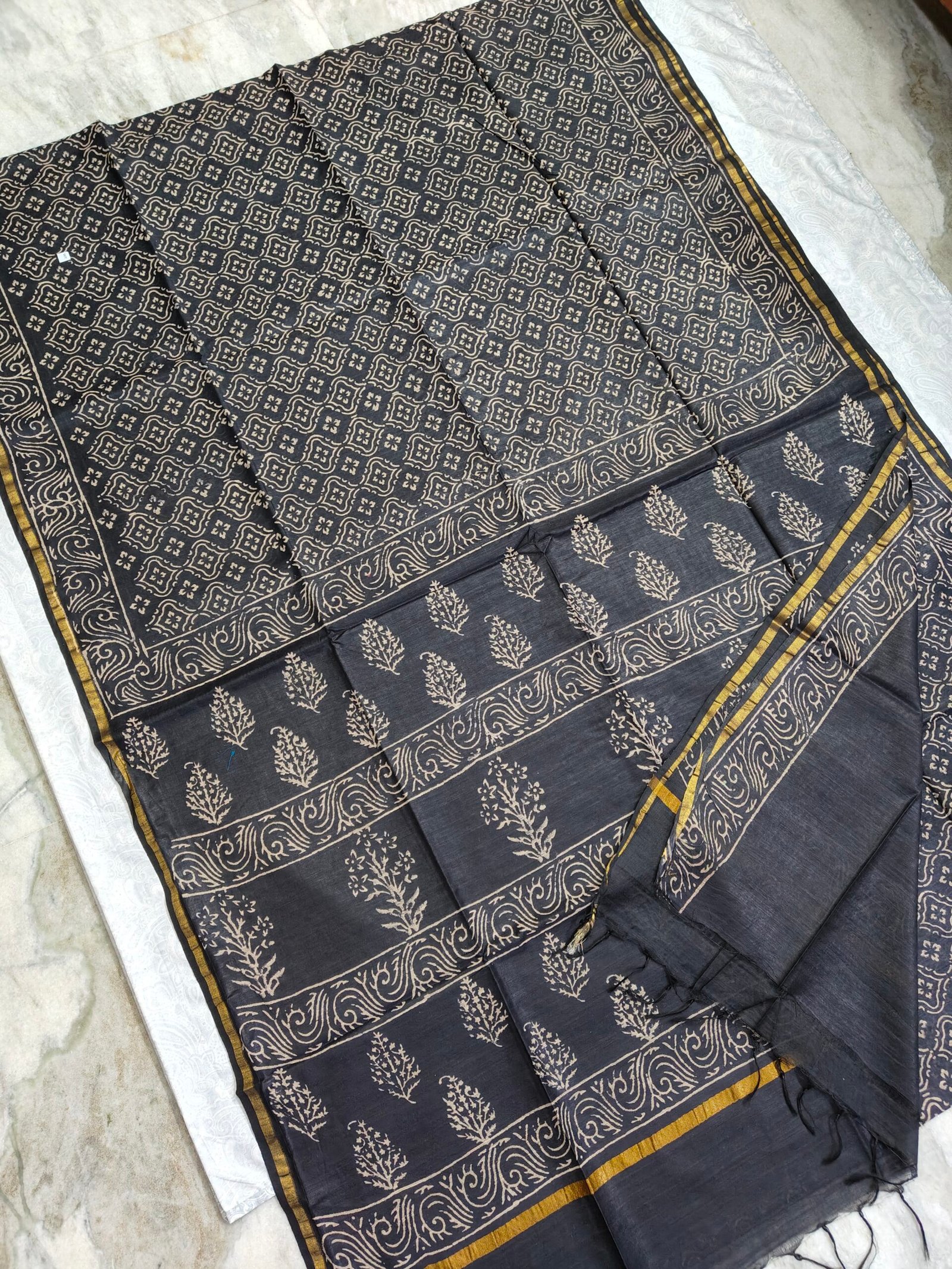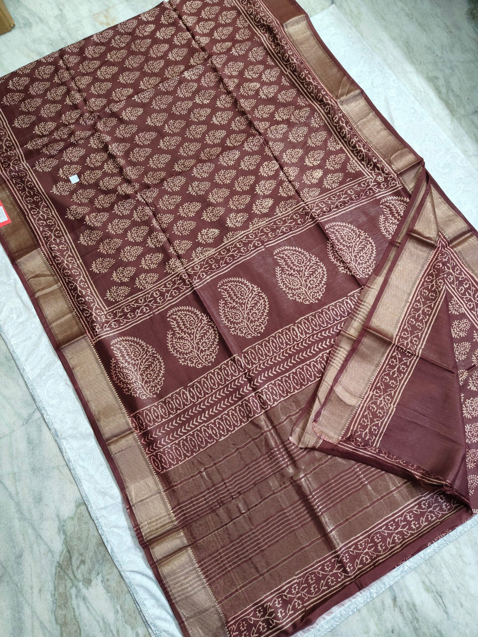 Maheswari Silk Saree with Block/Ajrak/Bagru Printed (MSS047)
