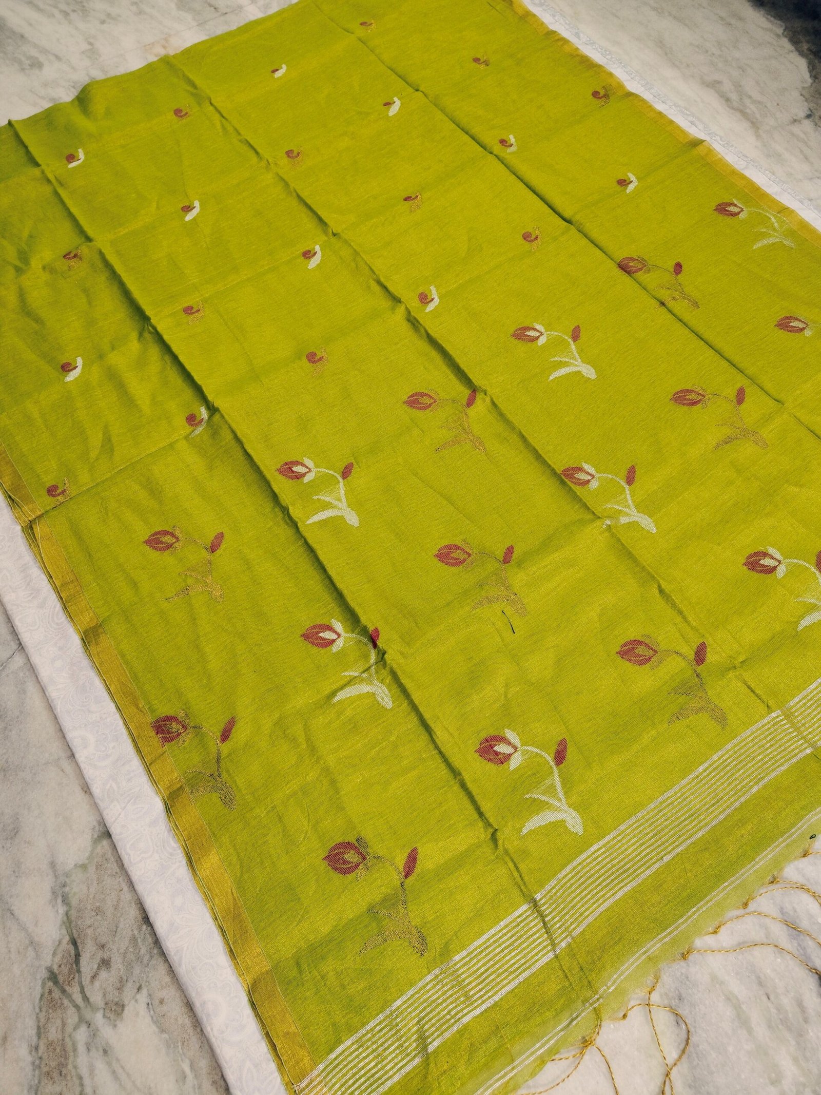 Tissue Lenin Handwoven Jamdani Saree with Tulip Buty (TLJT01)