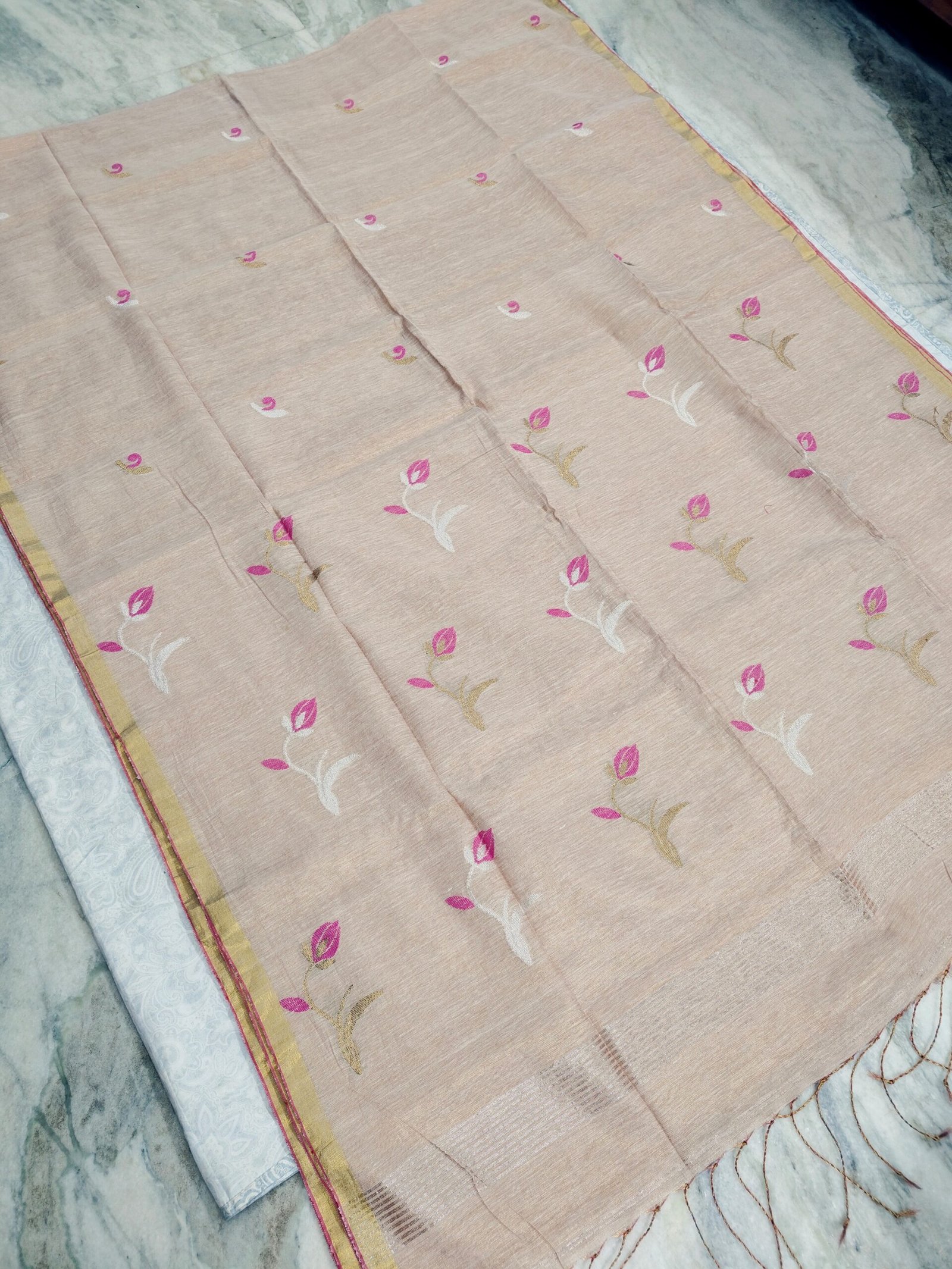 Tissue Lenin Handwoven Jamdani Saree with Lotus Buty (TLJL01)