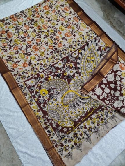 - Kota Doriya (Cotton + Silk) Saree crafted with screen print.