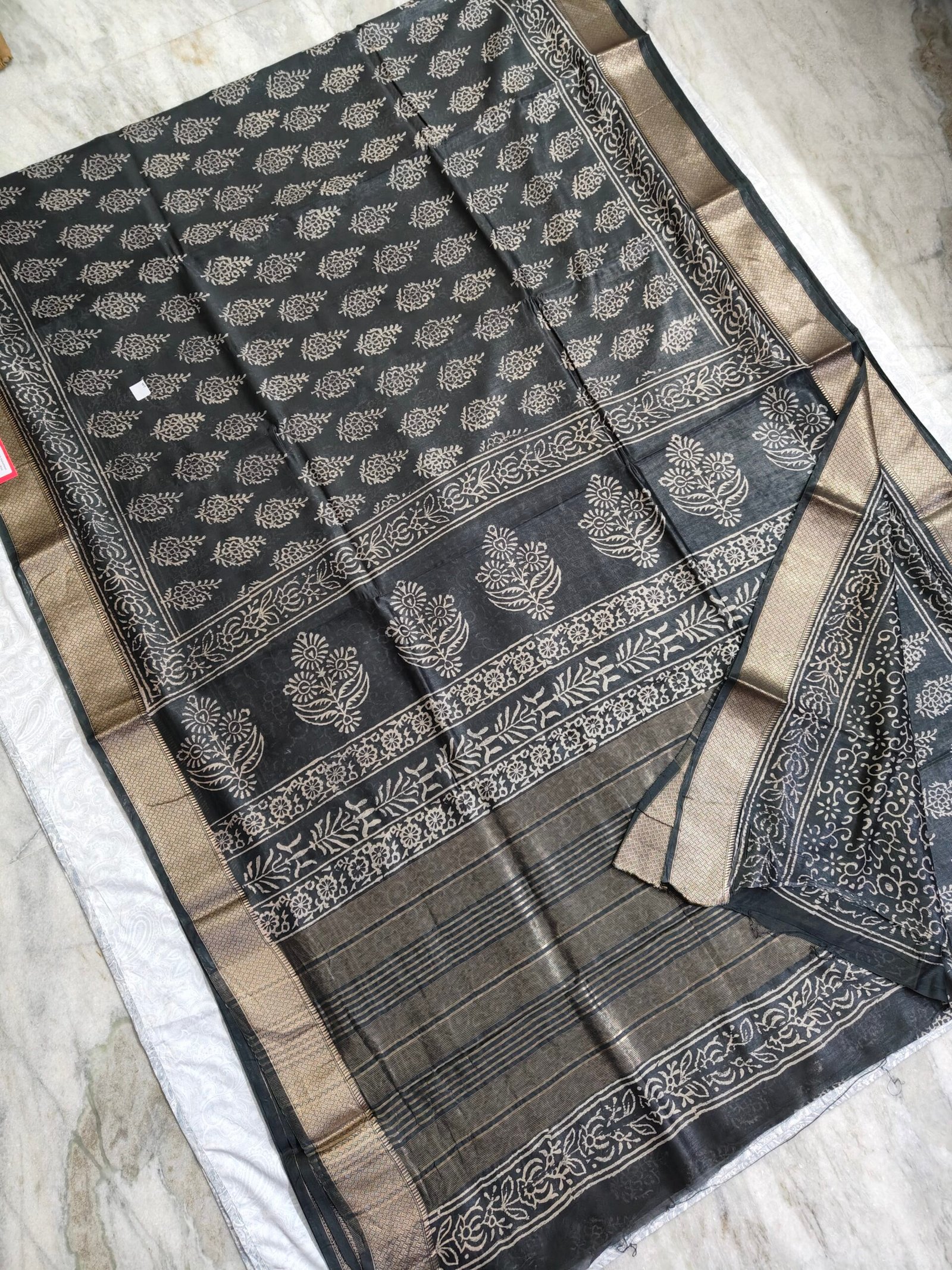 Maheswari Silk Saree with Block/Ajrak/Bagru Printed (MSS067)