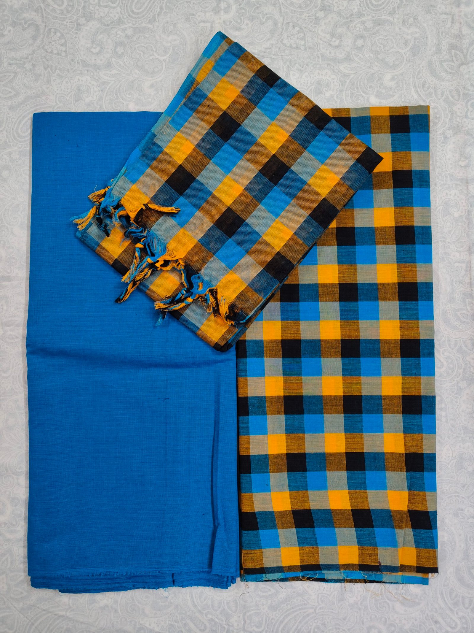 South Cotton Checks Dress Materials 3 Pcs Set