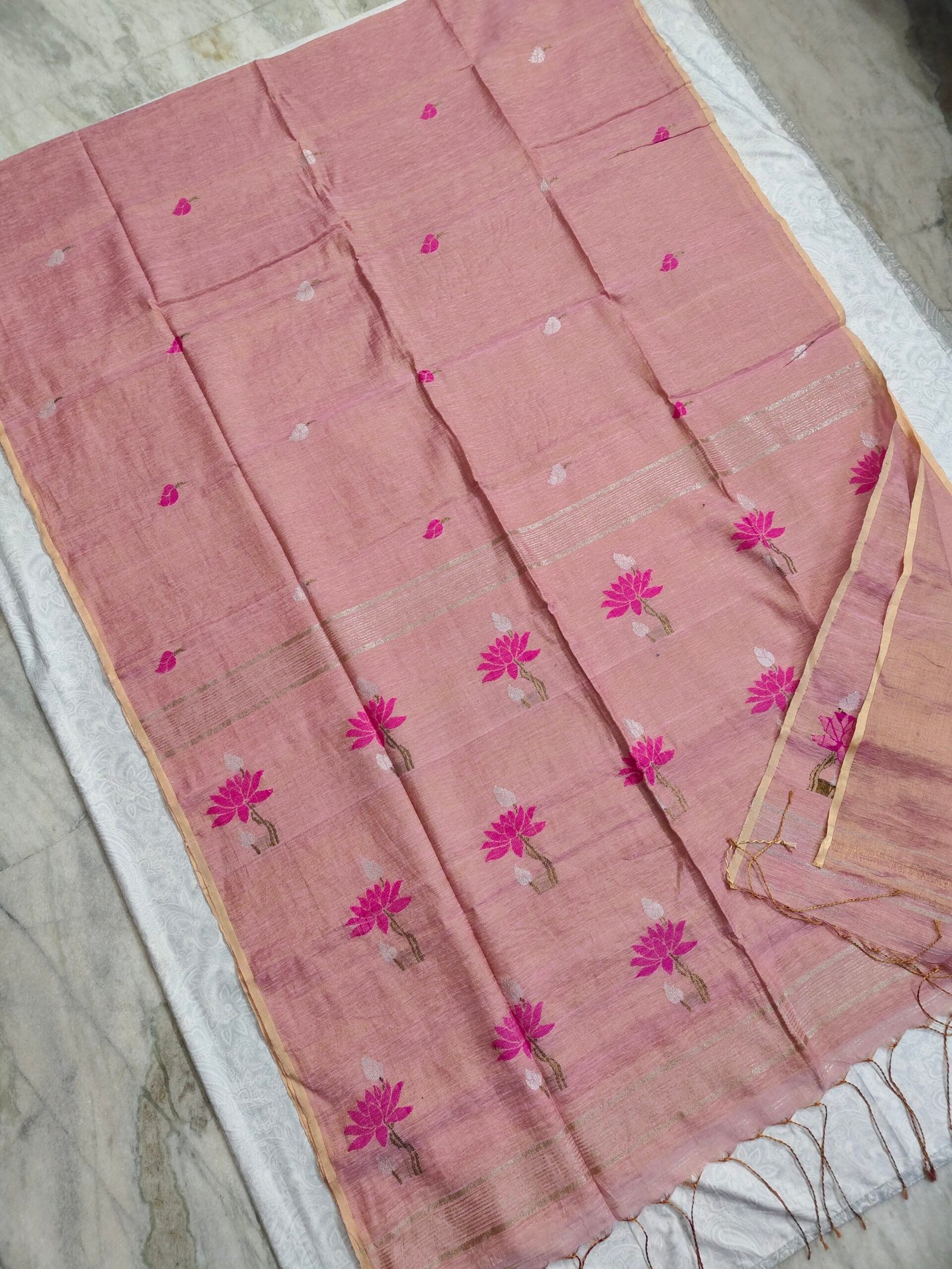- Tissue Lenin Jamdani Saree with an Handwoven Lotus buty.