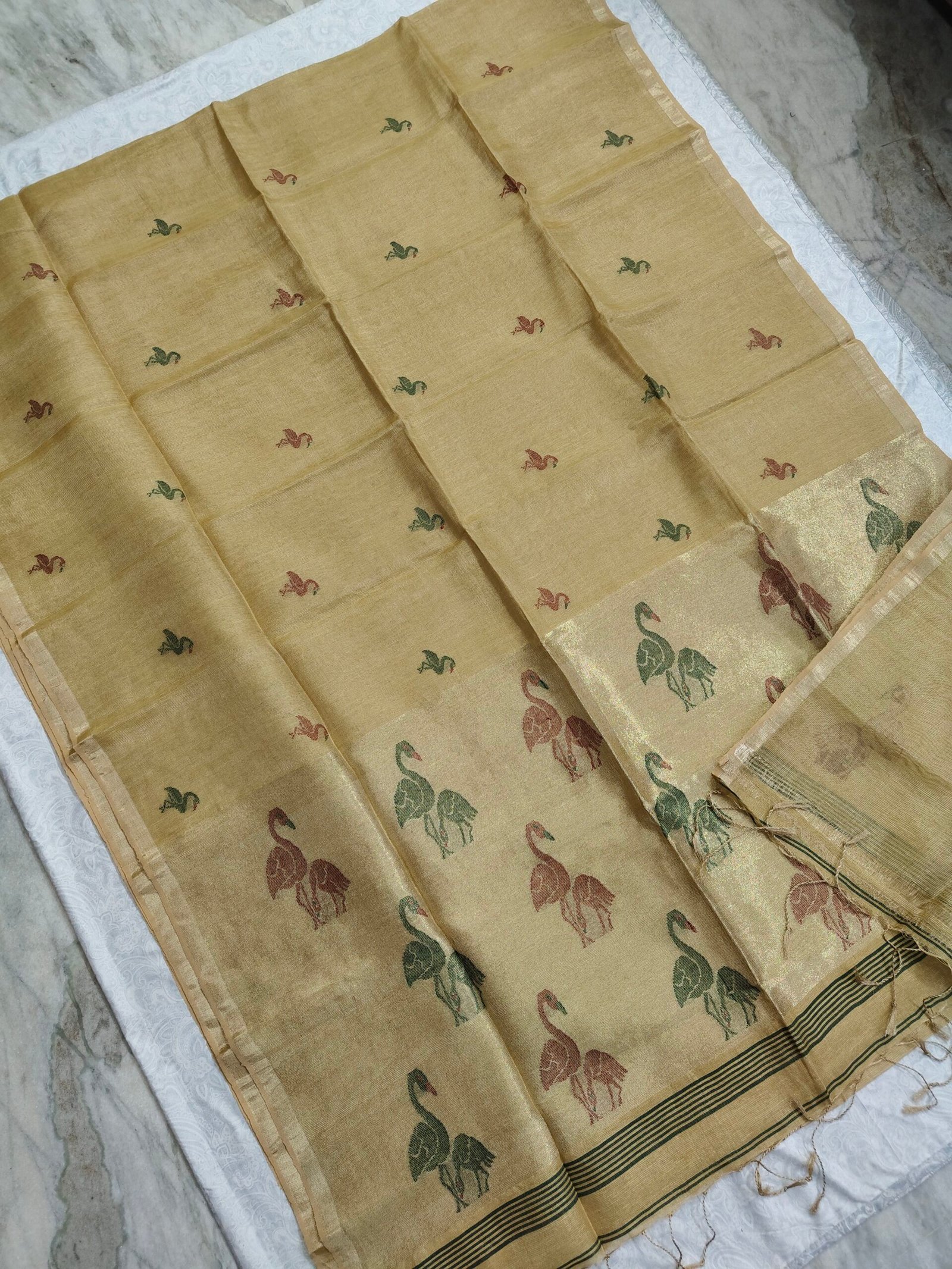 - Tissue Lenin Jamdani Saree with an Handwoven Paithani Pallu .