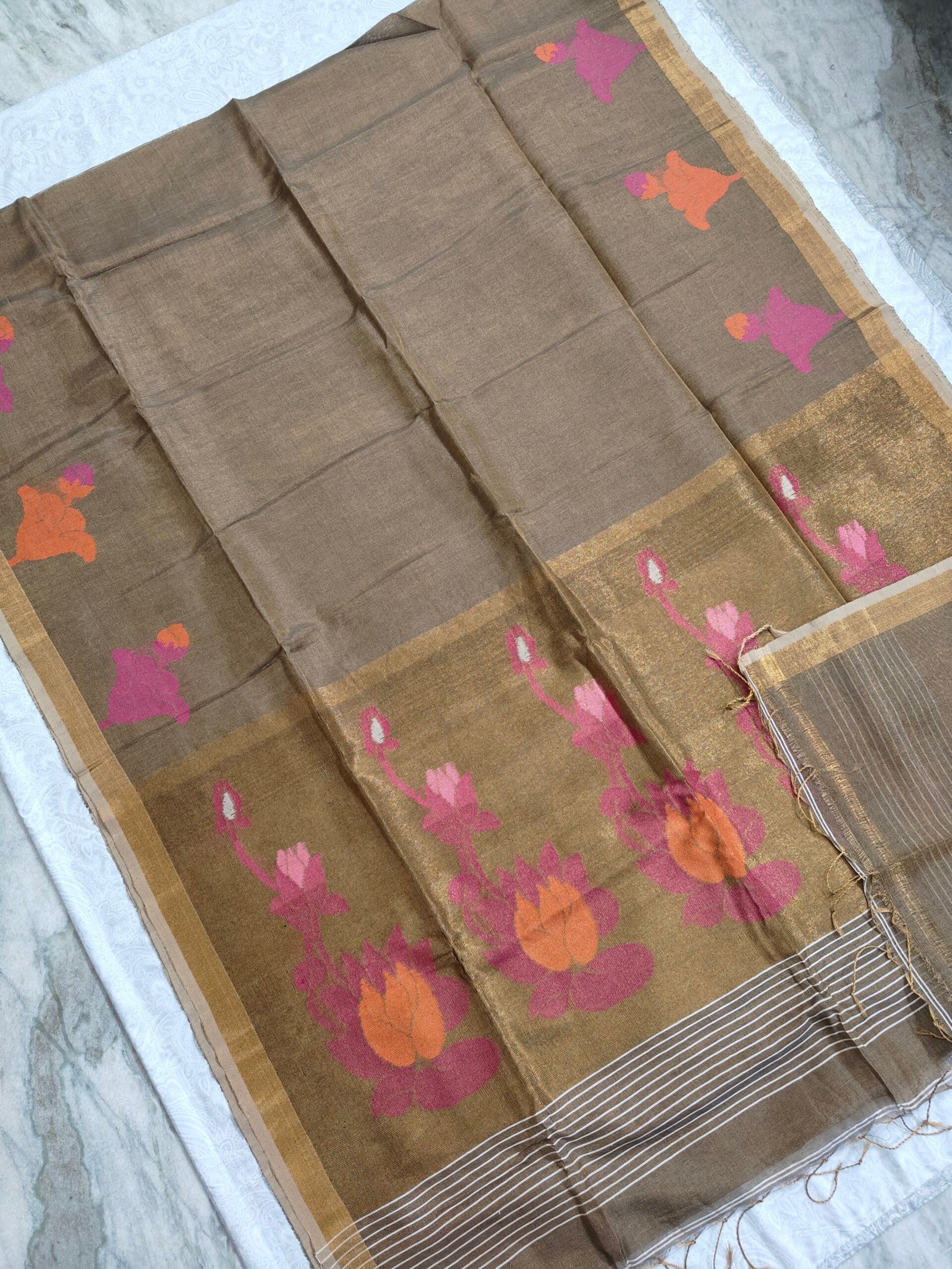 Tissue Lenin Handwoven Jamdani with Paithani Pallu